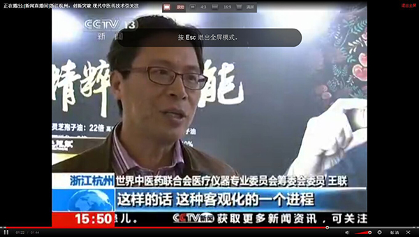 2015全國(guó)藥店年度峰會(huì)上我公司王總接受中央電視臺(tái)采訪,就目前中醫(yī)診療設(shè)備及中草藥現(xiàn)代化進(jìn)程發(fā)表自己的見解。