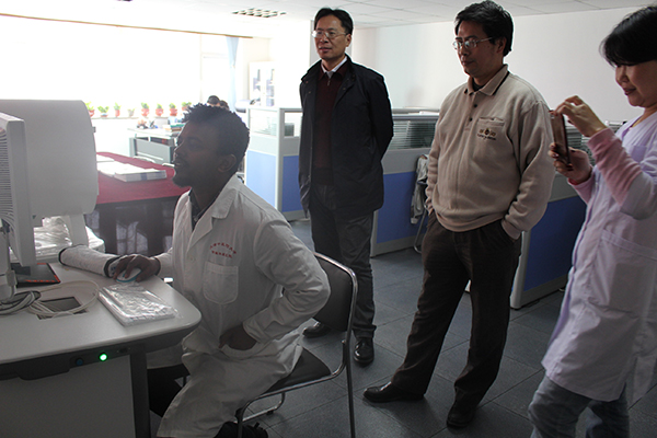 公司領(lǐng)導及于教授與留學生進行交流并指導學生進行實際操作